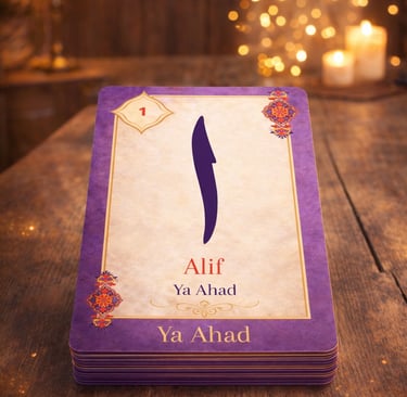 Inspiré par l’ordre sacré des lettres tel qu’enseigné par le maître Ibn Arabi, cet outil propose une exploration poétique et métaphysique. De l'Alif primordial au rayonnement du Ghayn, chaque carte est une porte ouverte sur une compréhension plus vaste de votre existence.